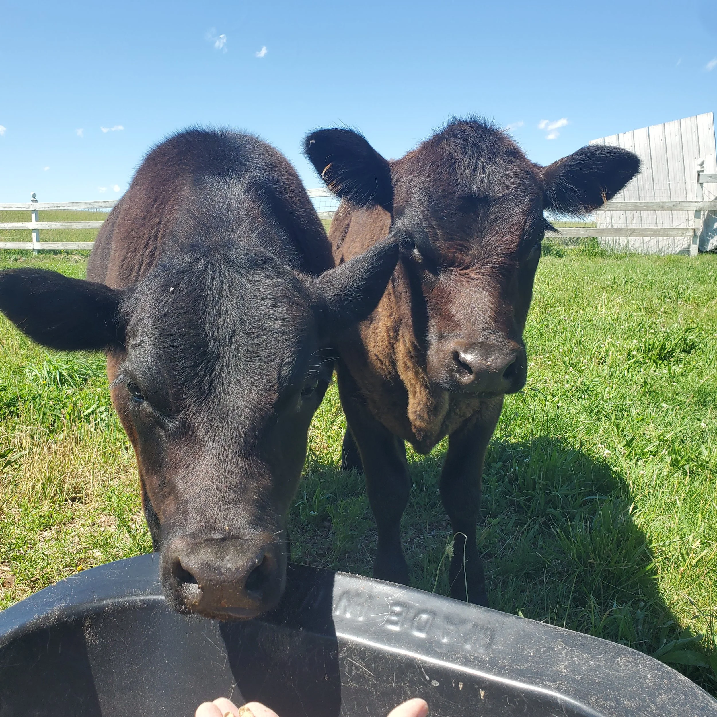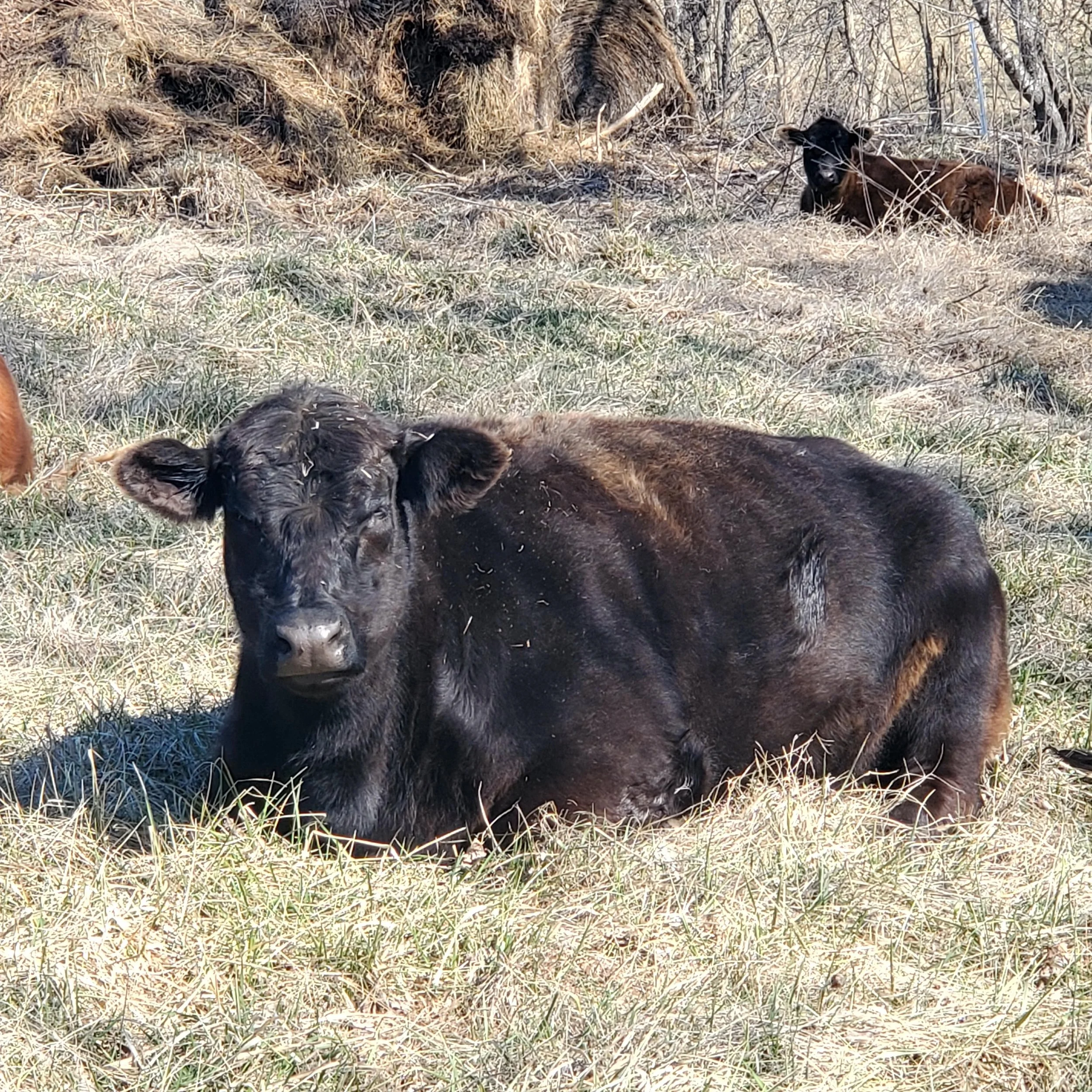 Hank was our second lowline angus calf to be born on our farm. He is notoriously known for getting himself into trouble and will gladly let you know when the electric fence is not working. He loves his back scratches and is very friendly. He is destined for the freezer but until then he will enjoy life on the farm.